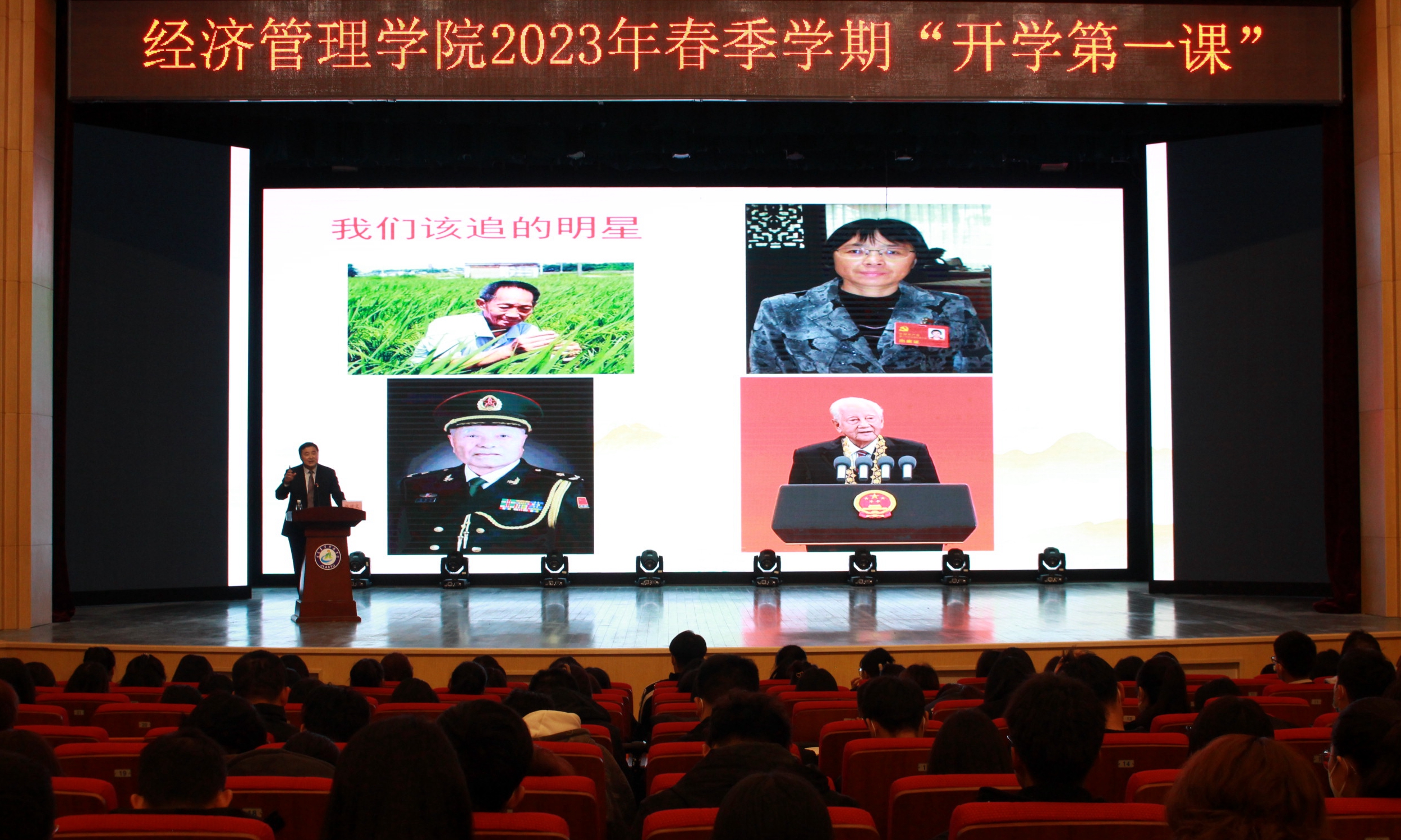 为深入学习贯彻党的二十大精神,落实立德树人根本任务,引领全院学生开启新学期,踏上新征程,3月11日上午,经济管理学院在大学生活动中心举行2023年春季学期“开学第一课”。学院全体辅导员老师以及各年级学生代表共计1200余人参加“开学第一课”。活动由党总支副书记金丽丽主持。
