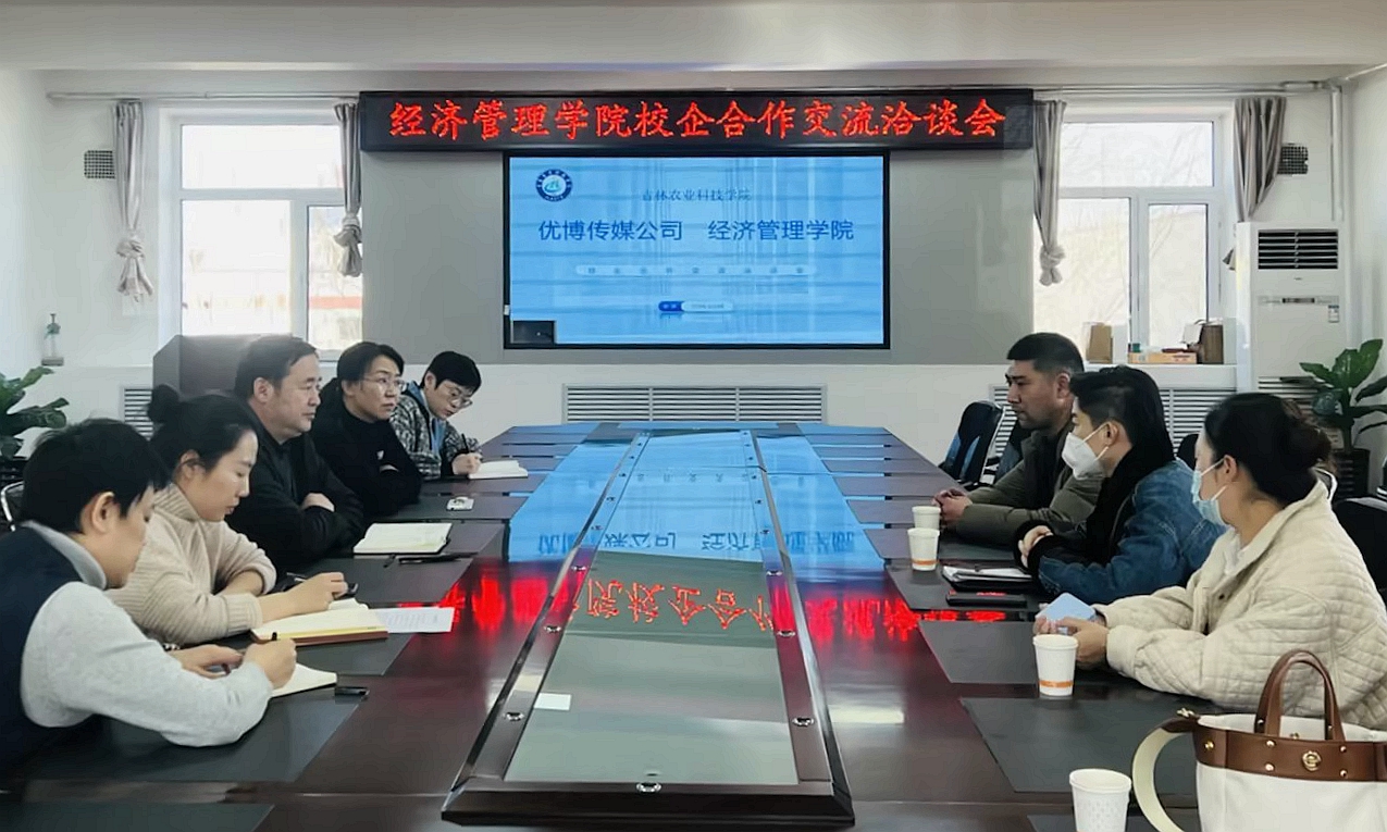 3月13日下午,经济管理学院与吉林市优博传媒有限公司于学院二楼会议室进行了校企合作洽谈交流。优博传媒公司总经理白洋、副总经理杨琳、人力资源总监朱琳、市场部经理柳倩倩以及学院领导班子全体成员参加了此次交流活动。