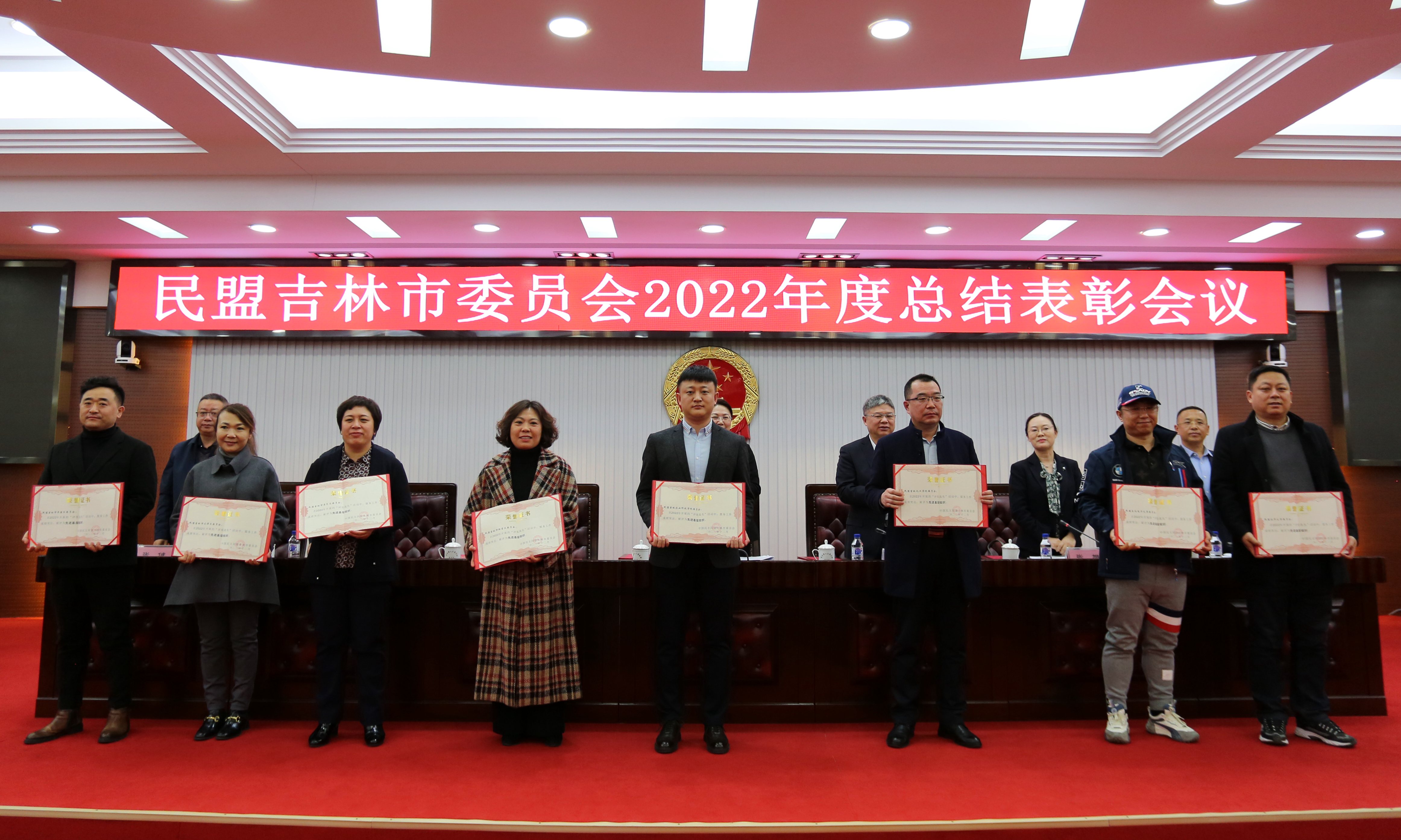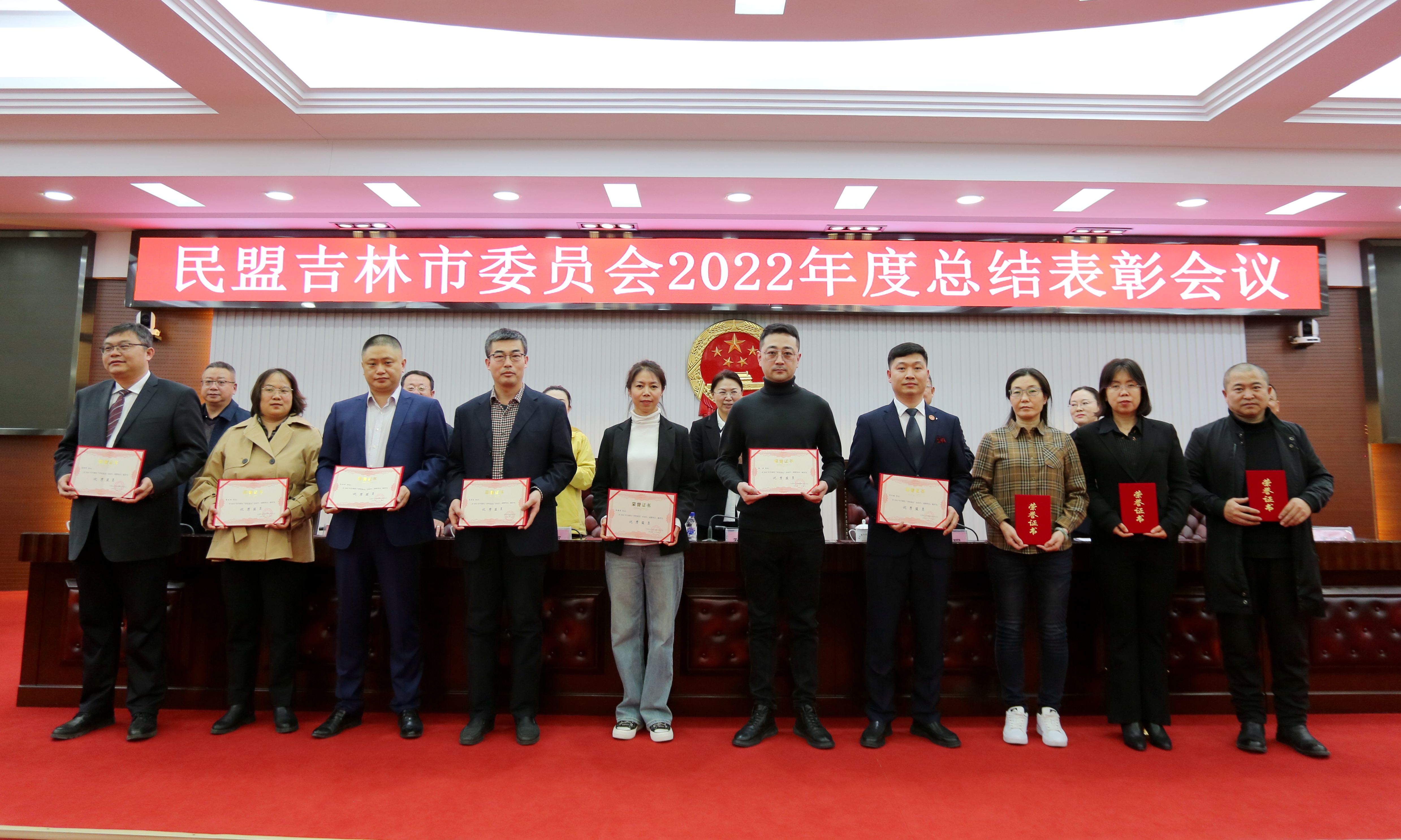 近日,民盟吉林市委员会2022年度总结表彰会议在市人大机关会议室召开。我校民盟委员会获得“先进基层组织”荣誉称号,校民盟委员会主委徐丽萍,副主委李龙,盟员赵立峰、叶春光获得优秀盟员荣誉称号。