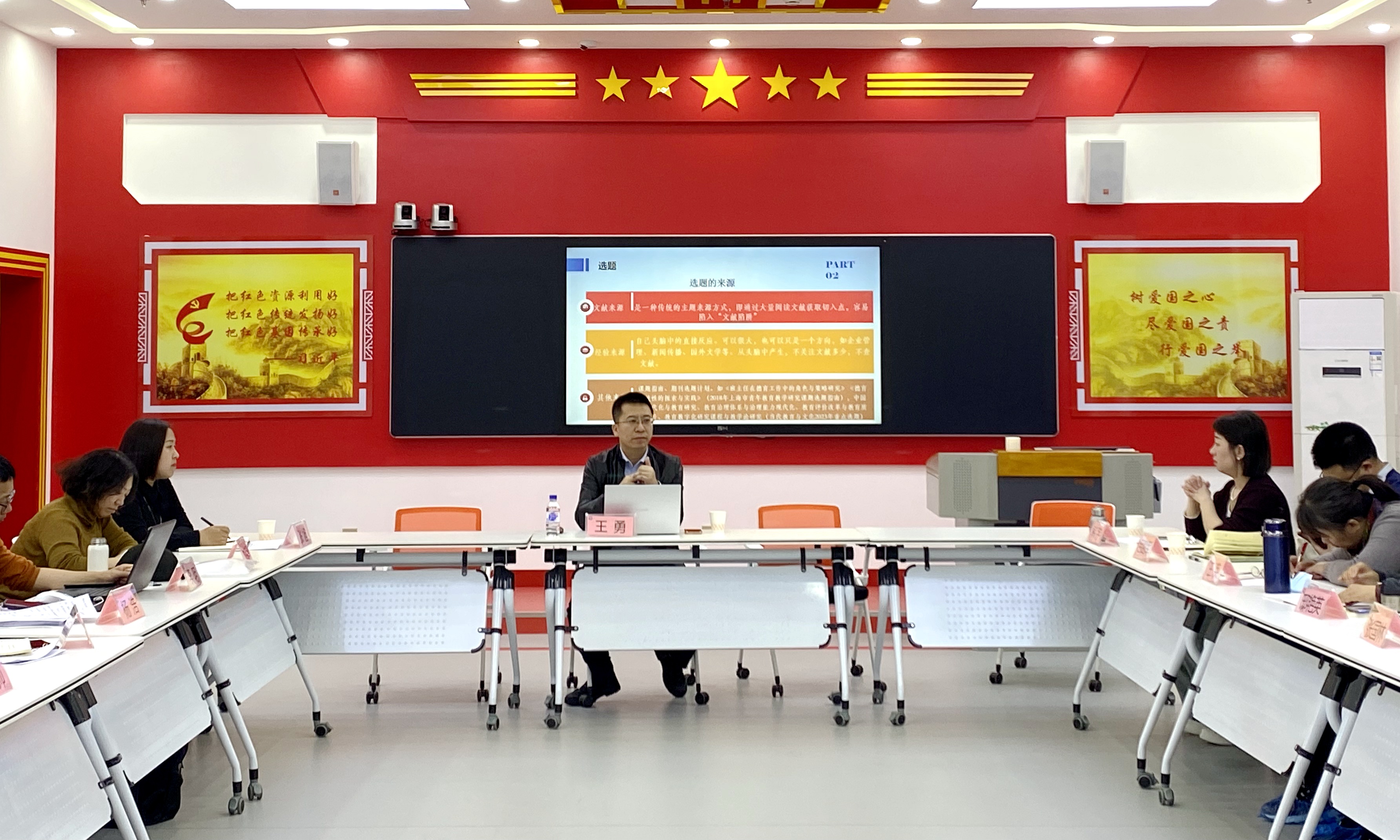 为进一步提升教师教育教学工作的专业化水平和教研论文的撰写能力,3月22日下午,马克思主义学院在红色教育智慧基地组织开展“如何撰写高质量教研论文”主题教学沙龙活动。本次活动由副院长张旭主持,特别邀请吉林大学马克思主义学院王勇教授作题为《从“纸上谈兵”到“运筹帷幄”——教研论文写作全攻略》的专题报告,学院全体教师参加了本次活动。