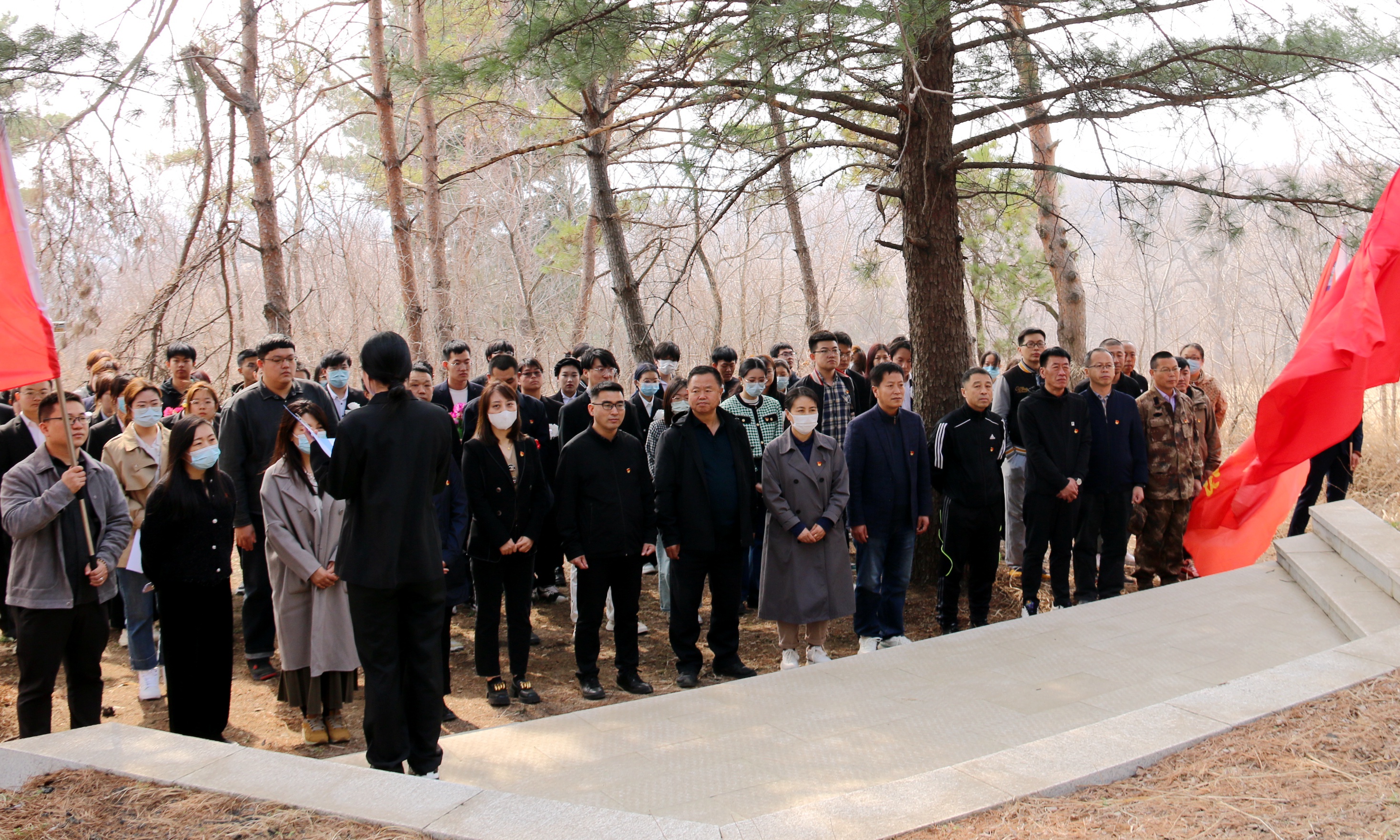 左家校区全体在校党员在咸日浩烈士墓前,着装整齐,全体肃立,面向为革命事业英勇献身的咸日浩烈士静默志哀,并向革命先烈们敬献手捧花和小白花,寄托哀思,深切缅怀革命先烈的丰功伟绩,表达对先烈沉痛的哀悼和无尽的崇敬之情。