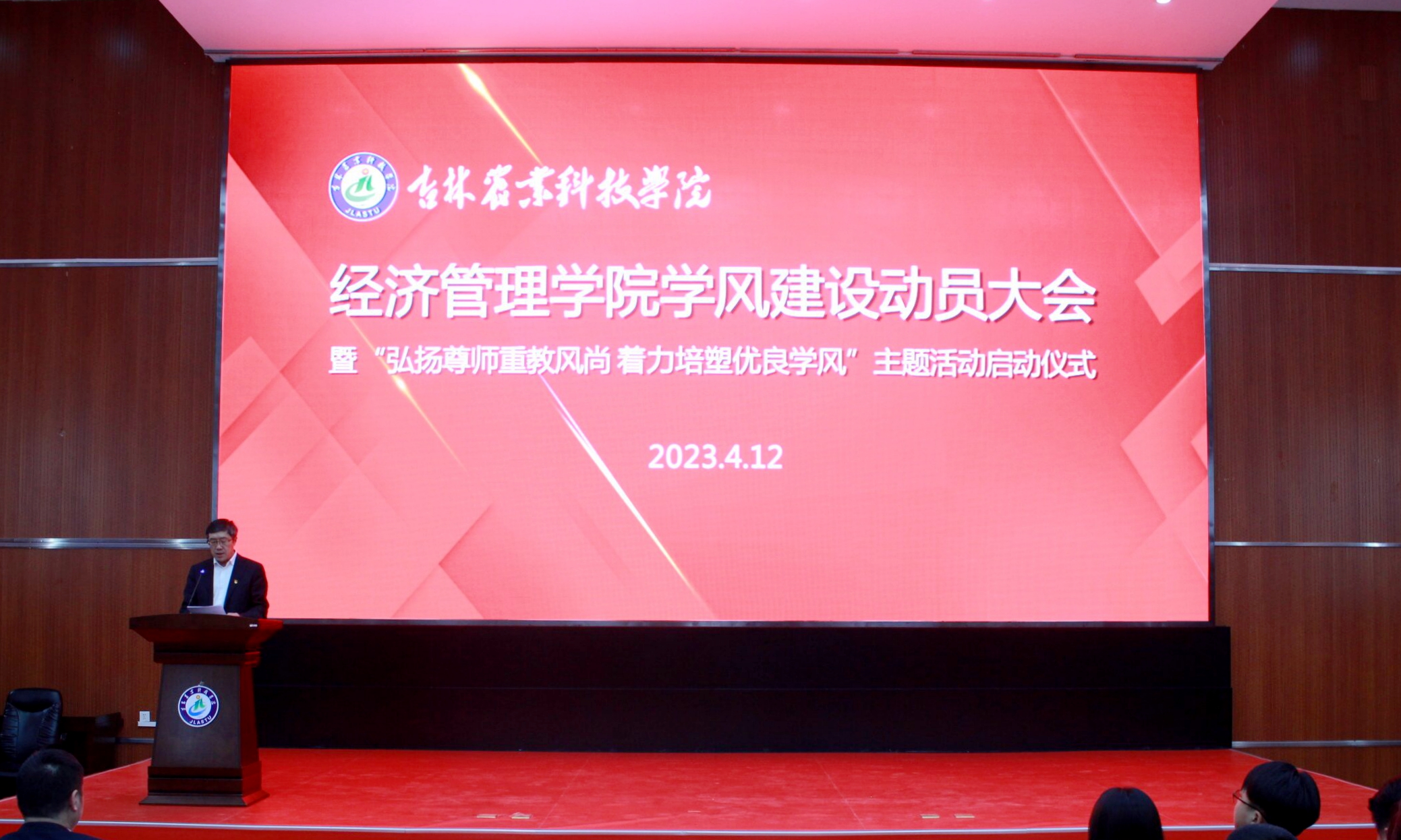 为积极响应学校“励学·笃行”学风建设活动相关要求,营造浓郁良好的学习氛围,促进学生成长成才,4月13日,经济管理学院召开了学风建设动员大会暨“弘扬尊师重教风尚 着力培塑优良学风”主题活动启动仪式。校党委副书记王怀忠出席活动现场。学院党总支副书记金丽丽主持活动。