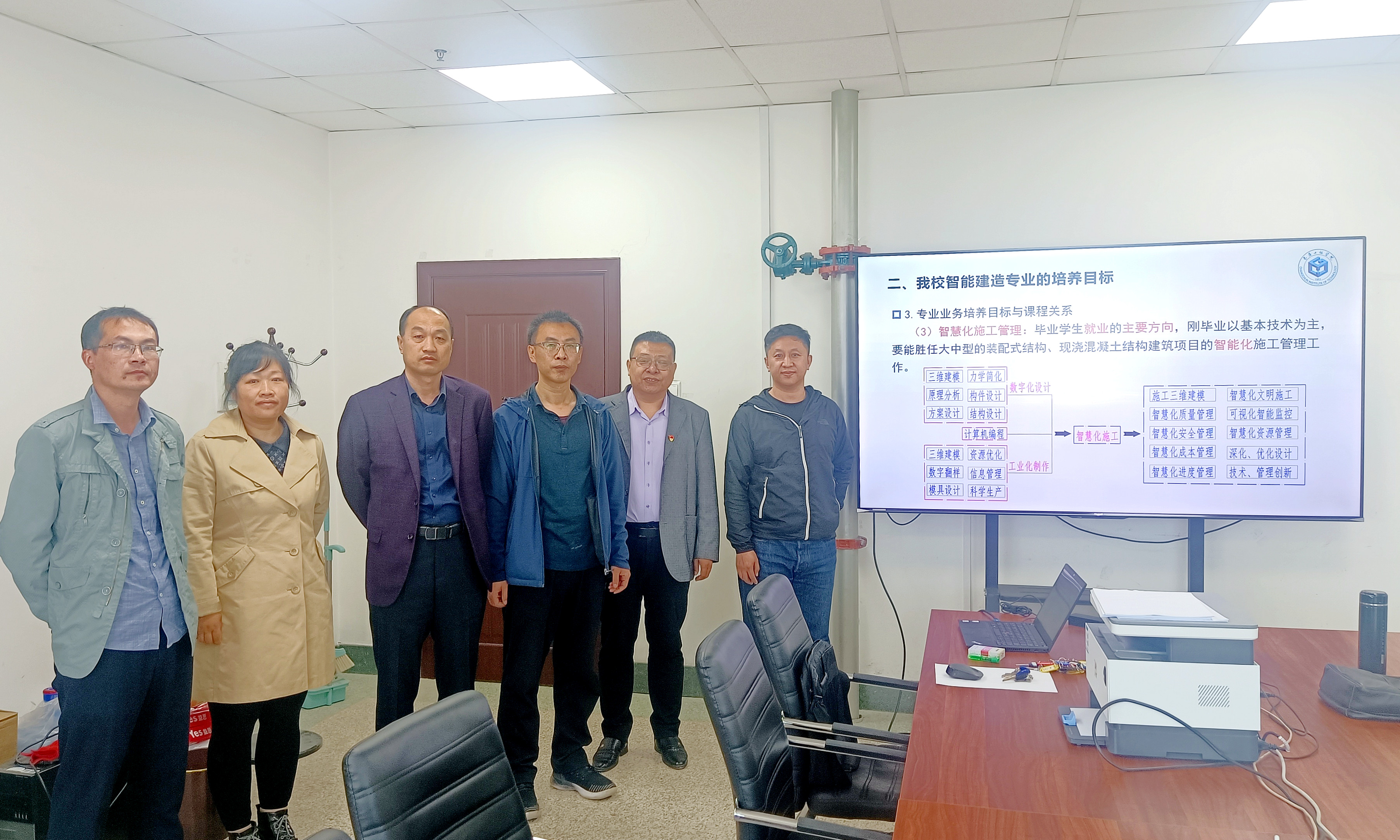 调研学习中,老师们对应用型本科智能建造专业人才培养、师资队伍、理论课程体系、实践教学体系及实验室建设等内容进行了解。