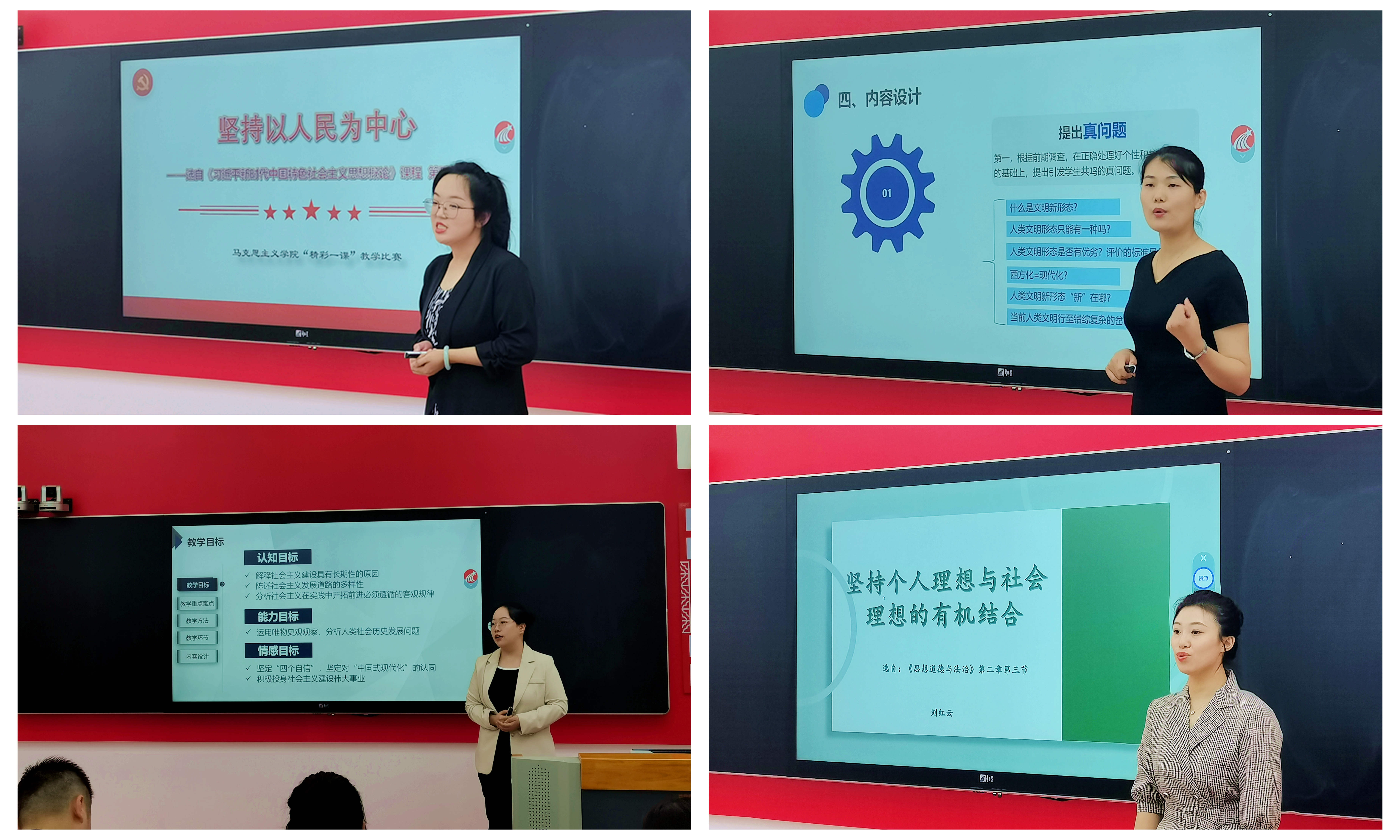 比赛中参赛教师从各自的课程出发,遵循思政课教材基本精神和要求,以课程教学指南为教学依据,围绕课程章节进行了说课展示,注重对教学内容的深度、教学环节的设计和教学方法的创新等方面的探索,突出课程特色和学情特点,充分展示了参赛教师扎实的理论功底和精心的教学设计。