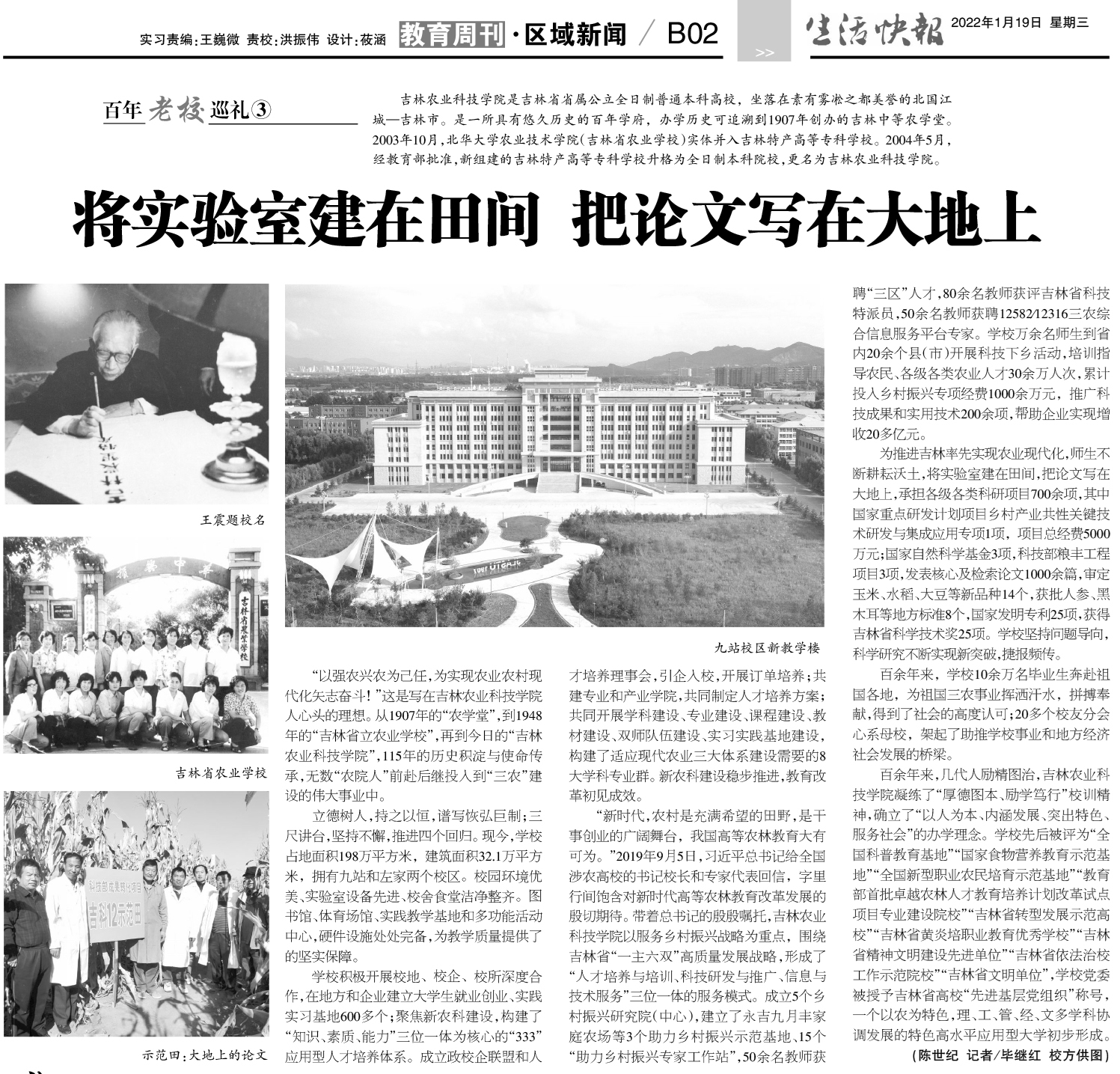 【吉林日报·生活快报】将实验室建在田间 把论文写在大地上