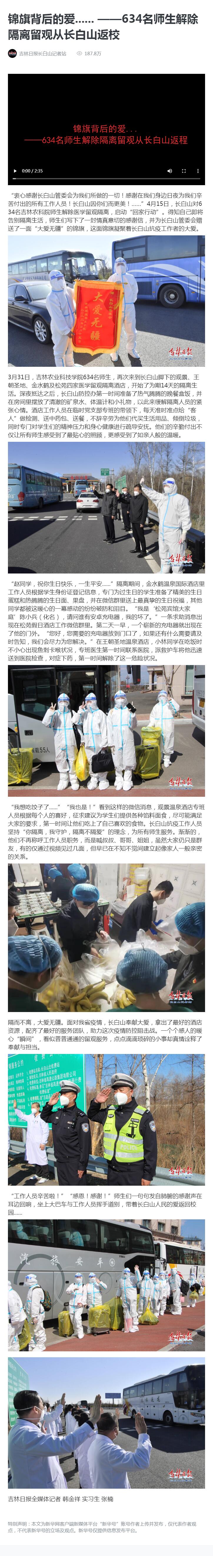 新华网客户端“新华号”对我校师生接触隔离从长白山返校进行报道。