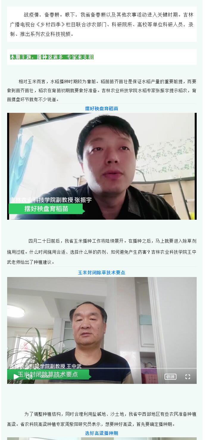 战疫情,备春耕。眼下,我省备春耕以及其他农事活动进入关键时期。吉林广播电视台《乡村四季》栏目联合涉农部门、科研院所、高校等单位科研人员,录制、推出系列农业科技视频。