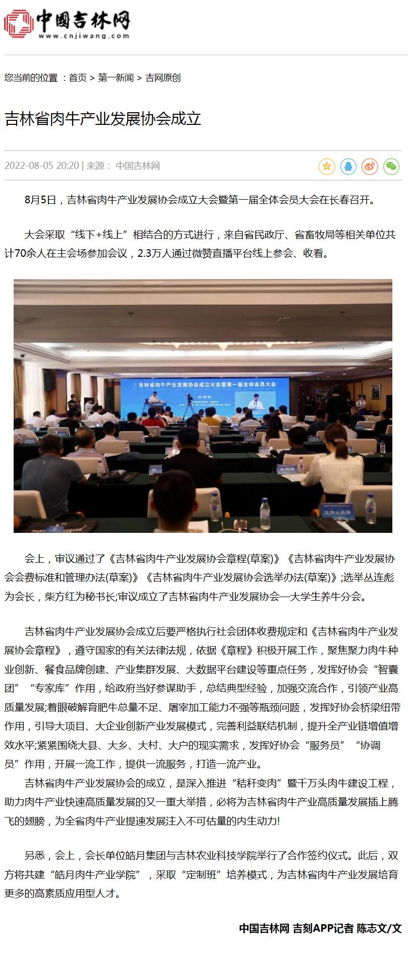 8月5日,吉林省肉牛产业发展协会成立大会暨第一届全体会员大会在长春召开。会上,会长单位皓月集团与吉林农业科技学院举行了合作签约仪式。此后,双方将共建“皓月肉牛产业学院”,采取“定制班”培养模式,为吉林省肉牛产业发展培育更多的高素质应用型人才。