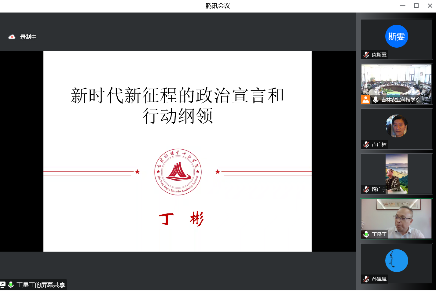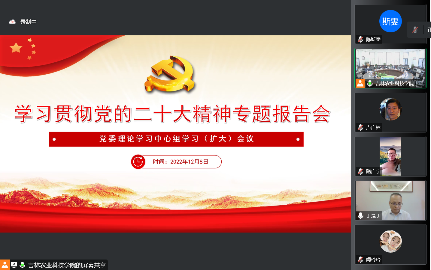 12月8日下午,我校召开学习贯彻党的二十大精神专题报告会暨党委理论学习中心组学习(扩大)会议。会议邀请吉林杨靖宇干部学院副院长、二级教授丁彬作《新时代新征程的政治宣言和行动纲领》专题辅导报告。全体校领导出席会议,报告会由党委副书记金华主持。