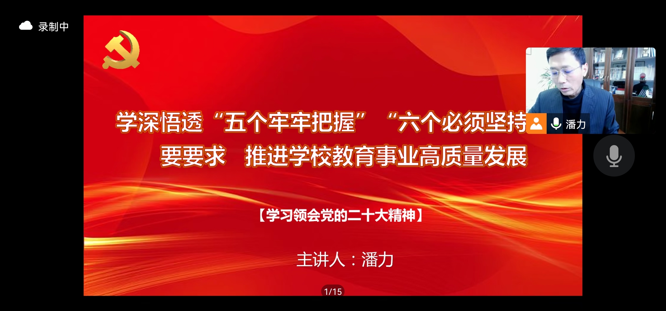 潘力以《学深悟透“五个牢牢把握”“六个必须坚持”重要要求推进学校教育事业高质量发展》为题,从“牢牢把握过去五年和新时代十年伟大变革的重要意义、牢牢把握习近平新时代中国特色社会主义思想的世界观和方法论、牢牢把握以中国式现代化推进中华民族伟大复兴的使命任务、牢牢把握以伟大自我革命引领伟大社会革命的重要要求、牢牢把握团结奋斗的时代要求”等五方面,解读了党的二十大精神。报告内容主题鲜明、站位高远、逻辑清晰、论述深刻,具有很强的政治性、理论性、实践性和指导性,帮助我们进一步加深了对党的二十大精神的理解,对我们认真学习宣传贯彻党的二十大精神,努力推进学院高质量发展具有重要的指导意义。