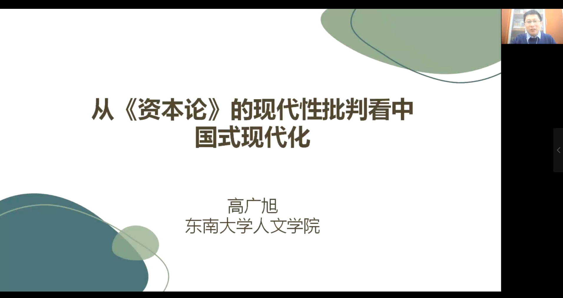 本次教学沙龙活动邀请东南大学人文学院哲学系教授、全国马克思主义哲学史学会理事、国家社科基金结题成果鉴定专家高广旭教授作题为“从《资本论》的现代性批判看中国式现代化”的报告。报告围绕“《资本论》的资本现代批判、中国式现代化对资本现代性的超越以及中国式现代化与创造人类文明新形态”三方面内容展开。高教授从恩格斯对《资本论》的述评入手,揭示出资本主义生产方式的秘密,阐明“以资本为中心的现代化”的文明史效应及其限度,深入诠释中国式现代化道路的理论内涵和实践意义,要充分吸收《资本论》的现代性思想,并以此为指导,全面理解中国式现代化道路的实践逻辑及其开启人类文明新形态的文明史意义。