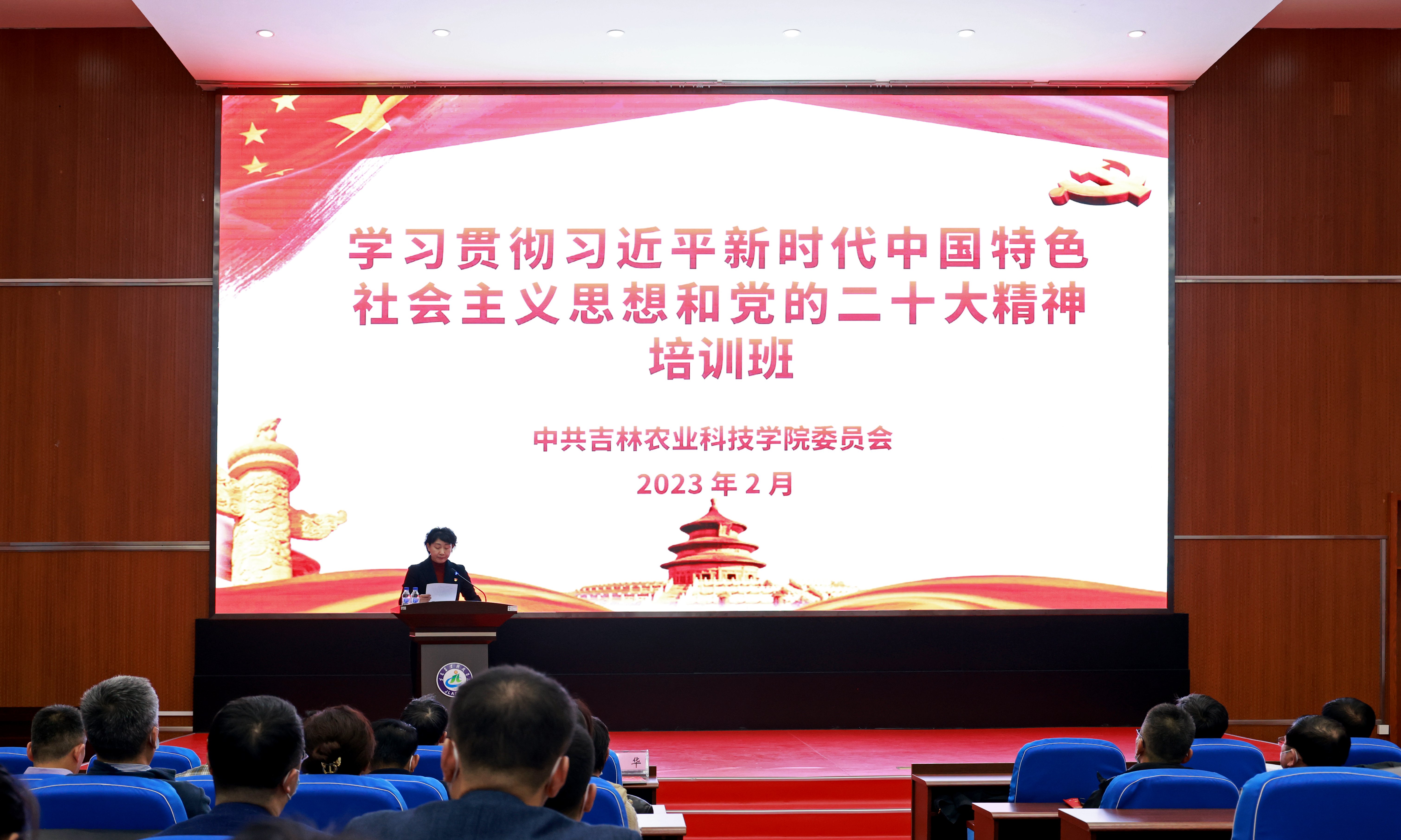为全面学习贯彻习近平新时代中国特色社会主义思想和党的二十大精神,认真落实新时代党的建设总要求,进一步提高党员干部政治站位、凝聚思想共识,助推学校各项事业高质量发展,2月25日—26日学校举办“学习贯彻习近平新时代中国特色社会主义思想和党的二十大精神”2023年春季干部培训班。开班仪式由学校党委副书记金华主持。学校领导,全校副科级以上干部,基层党支部书记,各级人大代表、政协委员、各民主党派负责人及青年骨干教师、博士、教授代表等300余人共同参加培训。